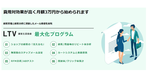 「LTV-Lab」「LTV-Omni」「LTV-Zaiko」「ふるさと-Lab」などのクラウドサービスを展開しています。顧客にメール配信やステップメールを配信できるCRMシステム「LTV-Lab」を開発。ECサイトだけでなく、実店舗の顧客統合もできるオムニチャネル接客ツール「LTV-Omni」を提供しています。サステナブルをテーマに経営改善ができるZaiko分析システム「LTV-Zaiko」を開発。過去のふるさと納税寄附者に直接メール配信ができる自治体特化のクラウド型CRMシステム「ふるさと-Lab」を提供しています。「世の中の課題をクラウドで解決する」をパーパスに掲げています。